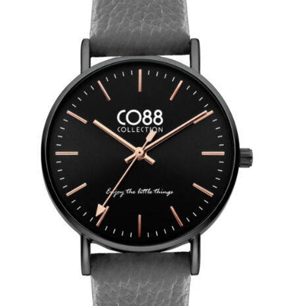 CO88 collection quartz horloge met grijs lederen band