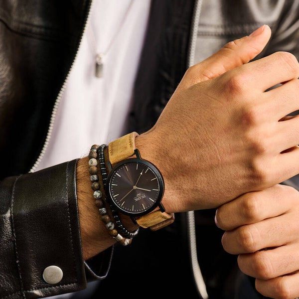 Dit analoge herenhorloge heeft een 42 mm brede kast die is gemaakt van hoogwaardige materialen. IPB coating De wijzerplaat heeft glanzende indexen die de uren en minuten aangeven, terwijl de zwarte wijzerplaat in combinatie met de bruine leren band het horloge een eigentijdse esthetiek geeft. De echt lederen band heeft een matte afwerking, is 25,5 cm lang en 2 cm breed, beveiligd met een gespsluiting. Met een waterdichtheid van 5 ATM zorgt dit horloge voor duurzaamheid en veelzijdigheid. Of je nu de voorkeur geeft aan een klassieke look of op zoek bent naar een eigentijds accent, dit horloge sluit naadloos aan bij elke persoonlijke stijl.