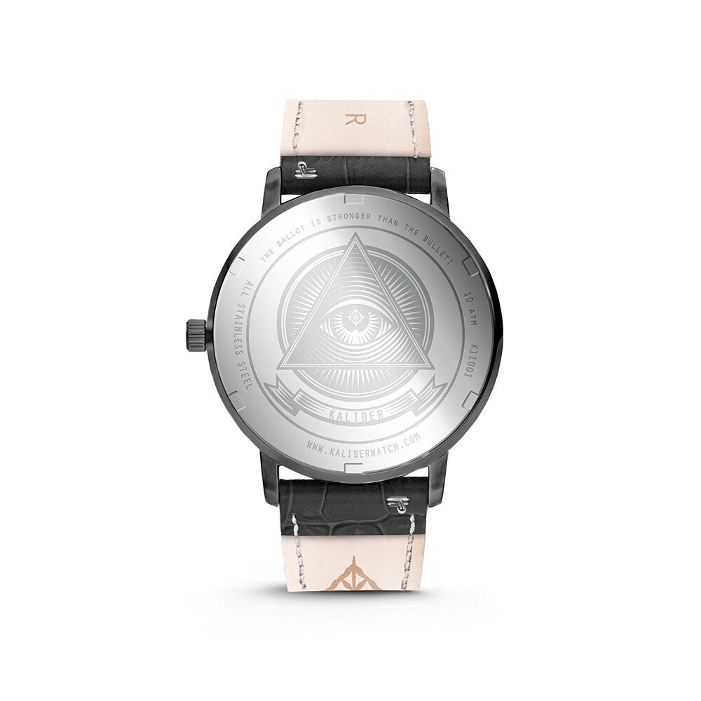 Liefhebber van horloges? Ga voor de Kaliber Watch collection. De design valt meteen op de zonnestraalvormig wijzerplaat (sun ray dial) en is mooi afgewerkt met 3D reliëf accenten. De horlogekast heeft een diameter van 40 mm en een gesp sluiting, het is een slanke stalen kast met een chic croco print leren band. Het horloge heeft 5ATM waterdichtheid.
