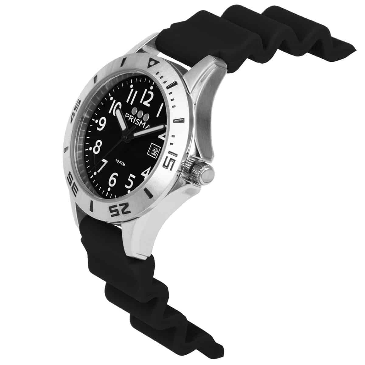 – Wijzerplaat: zwart met zilvere cijfers (arabisch)