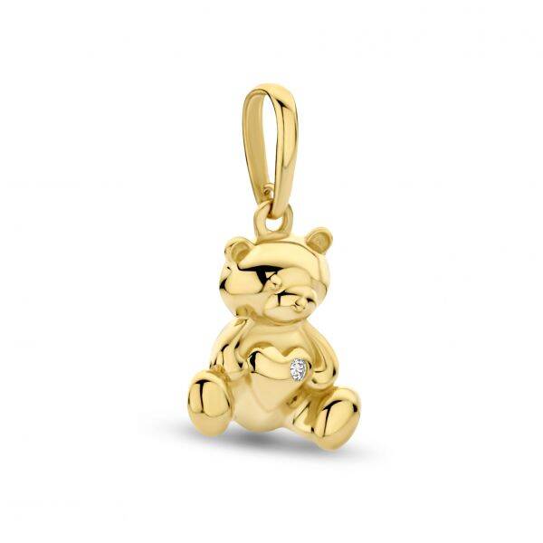 Deze hanger is gemaakt van 14 krt goud en de beer is voorzien van een kleine zirkonia steen.