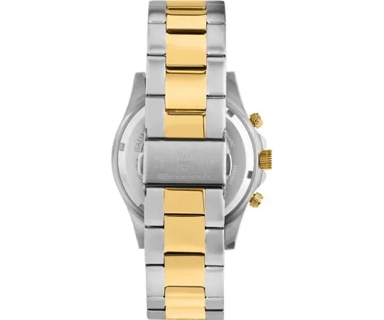 Dit Maserati Competizione herenhorloge combineert luxe en sportiviteit. De 43 mm roestvrijstalen kast met blauwe keramische lunette en diepblauwe wijzerplaat springt direct in het oog. Goudkleurige details geven het horloge een stijlvolle, premium uitstraling. De stalen band met goudaccenten maakt het geheel compleet. Voorzien van subdials, datumaanduiding, krasbestendig mineraalglas en waterdicht tot 10 ATM.